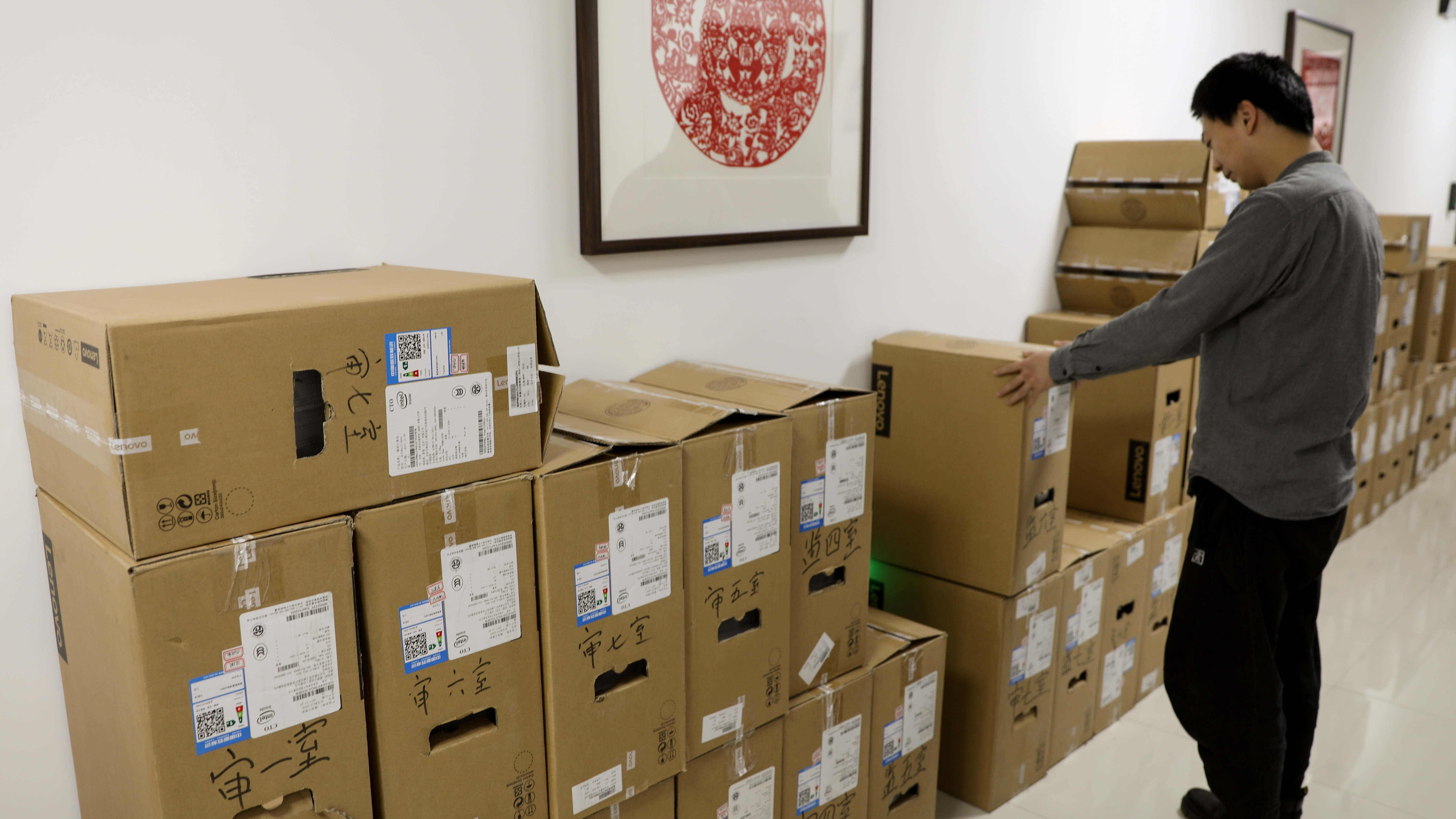 2017年12月29日上午,技术人员正在配备办公设备