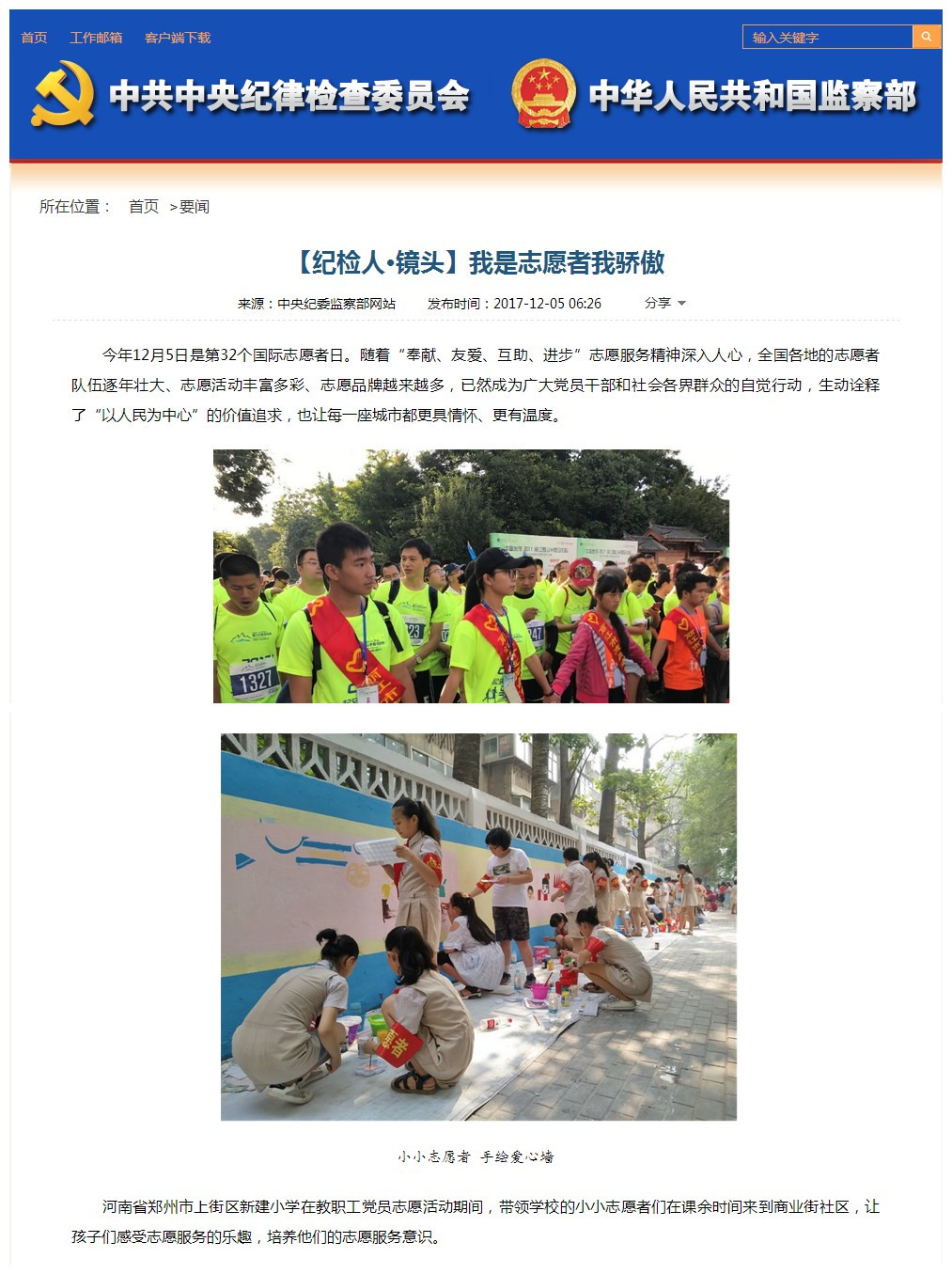 摘要:12月5日,中央纪委网站要闻栏目【纪检人·镜头】《我是志愿者我骄傲》采用我市照片。
