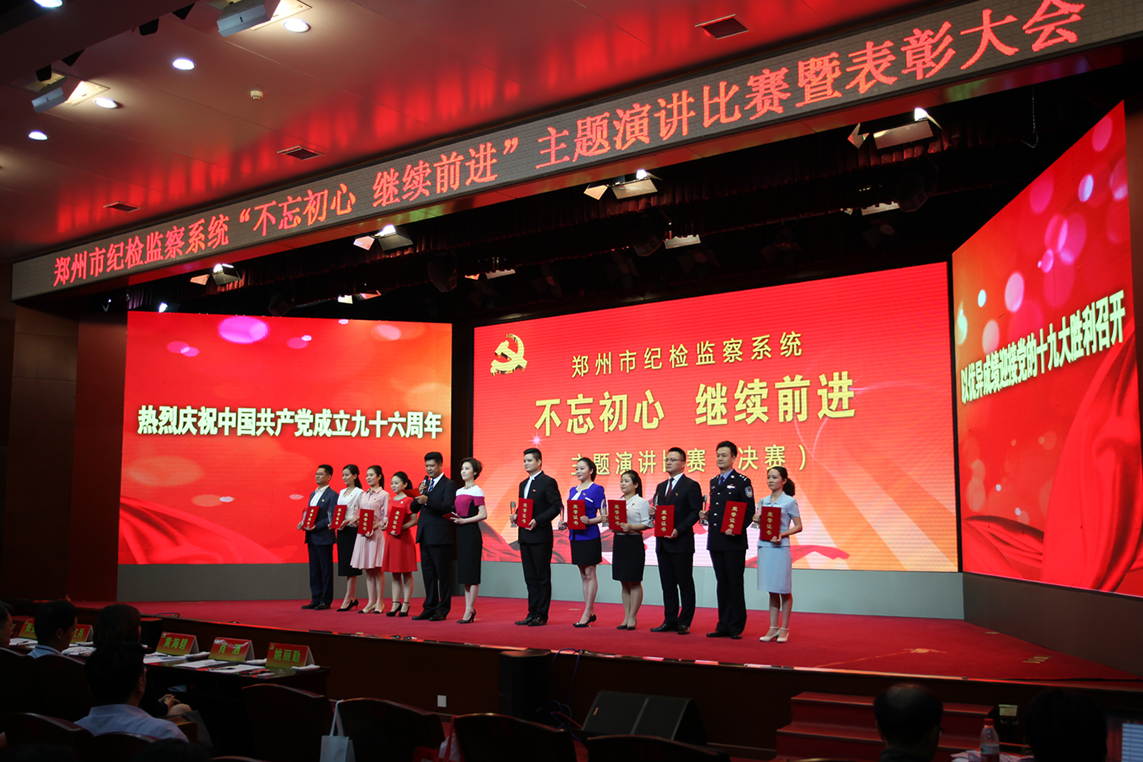 为庆祝中国共产党建党96周年,喜迎党的十九大胜利召开,推动“讲忠诚、守纪律、做标杆”活动深入开展,6月28日晚,市纪委举行全市纪检监察系统“不忘初心 继续前进”主题演讲比赛(决赛)暨纪检监察工作表彰大会。 省委常委、省纪委书记任正晓,省委常委、郑州市委书记马懿,省纪委副书记吴宏亮,市领导靳磊、白红战、王璋、周富强、焦豫汝、吴福民等...
